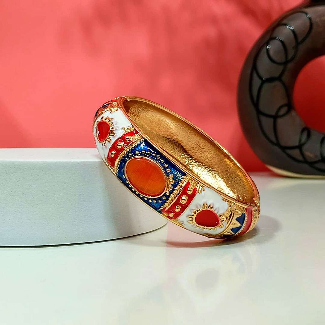 Crafted with precision, our Traditional Enamel Bangles and Designer Meenakari Bangles showcase vibrant colors and detailed patterns. Whether you prefer a Stylish Enamel Kada or an Ethnic Meenakari Bracelet, each piece is a statement of culture and fashion. These are not just bangles but Handcrafted Enamel Bangles that blend elegance with durability.